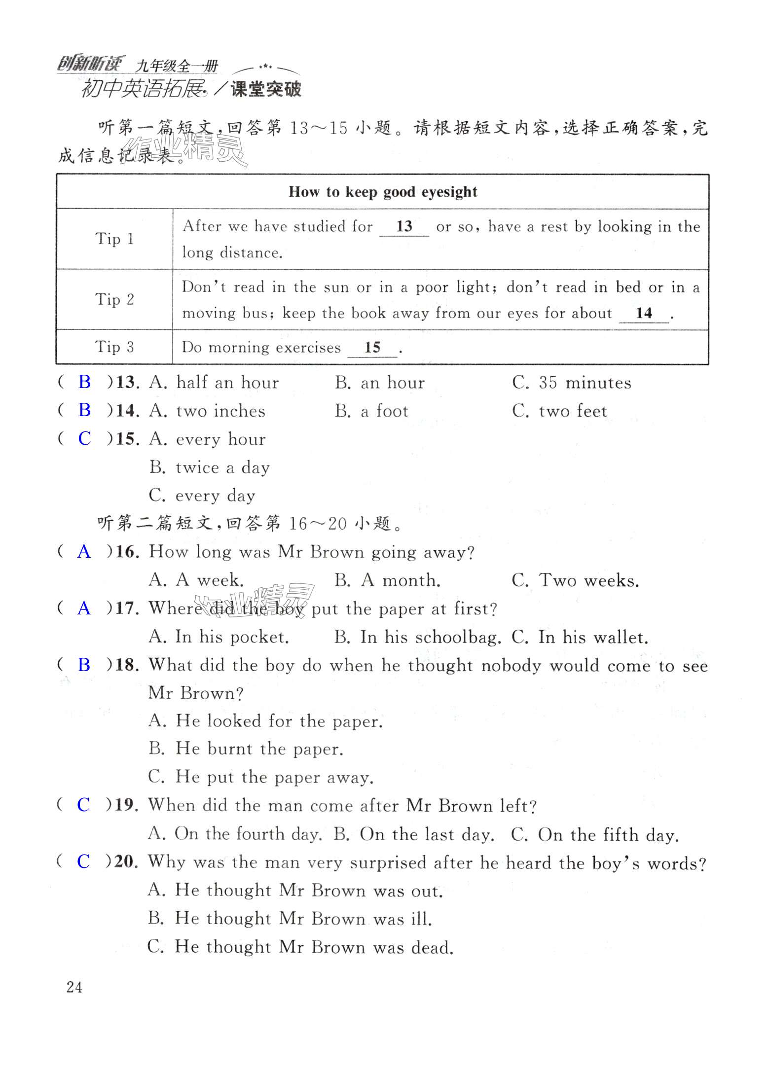 注:目前有些书本章节名称可能整理的还不是很完善,但都是按照顺序排列的,请同学们按照顺序仔细查找。练习册 2024年初中英语拓展课堂突破九年级全一册译林版 答案主要是用来给同学们做完题方便对答案用的,请勿直接抄袭。