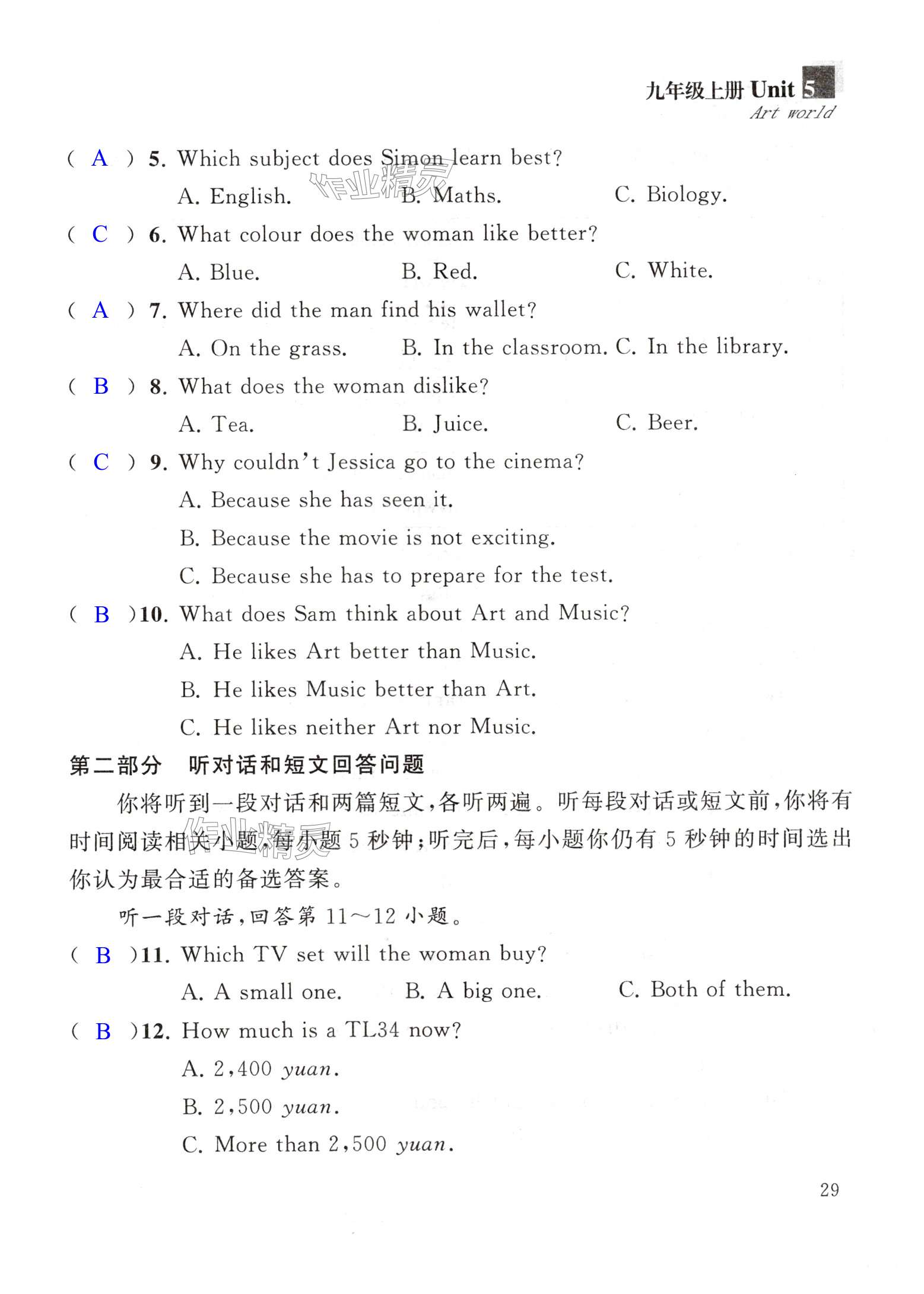 注:目前有些书本章节名称可能整理的还不是很完善,但都是按照顺序排列的,请同学们按照顺序仔细查找。练习册 2024年初中英语拓展课堂突破九年级全一册译林版 答案主要是用来给同学们做完题方便对答案用的,请勿直接抄袭。