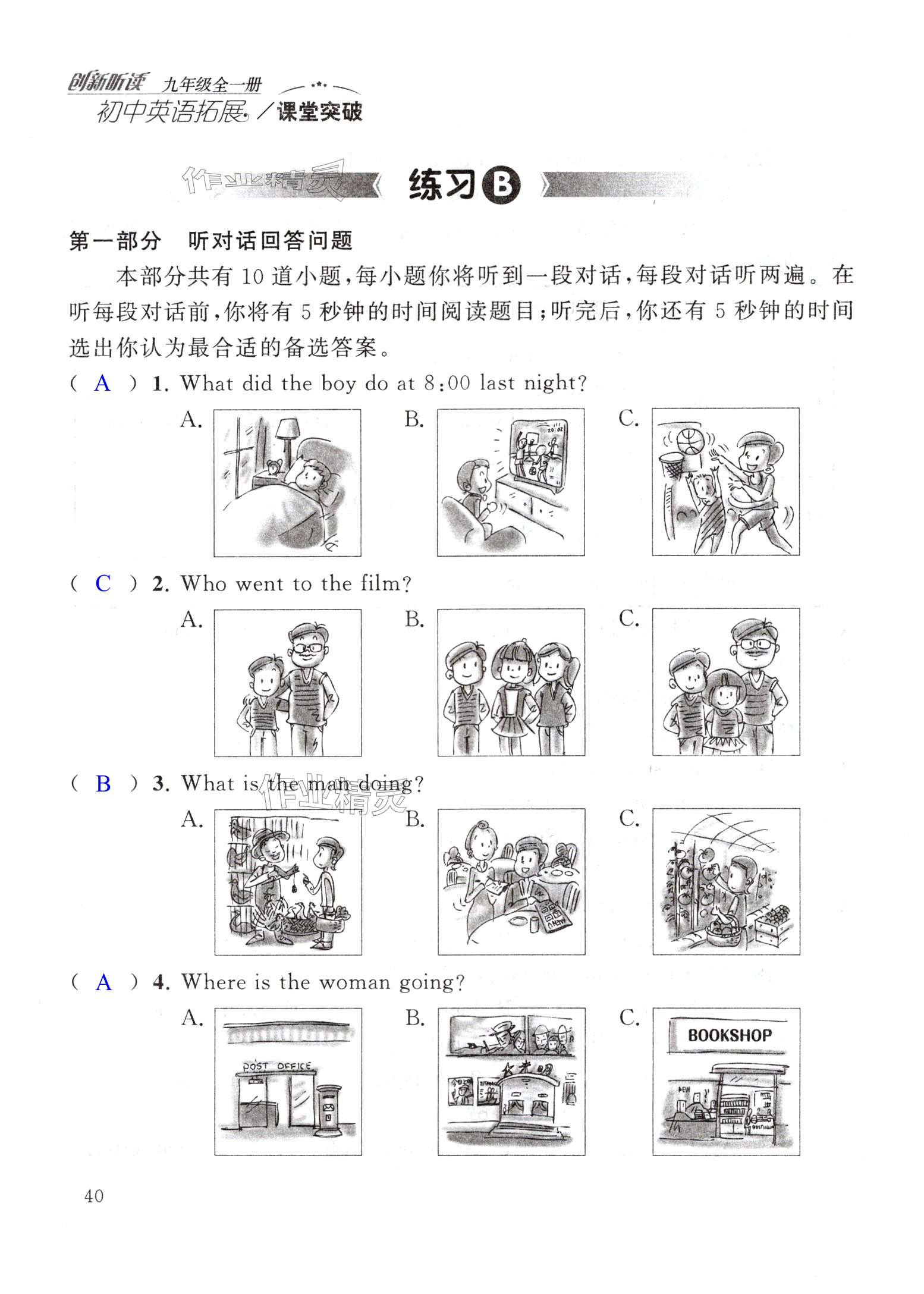 注:目前有些书本章节名称可能整理的还不是很完善,但都是按照顺序排列的,请同学们按照顺序仔细查找。练习册 2024年初中英语拓展课堂突破九年级全一册译林版 答案主要是用来给同学们做完题方便对答案用的,请勿直接抄袭。