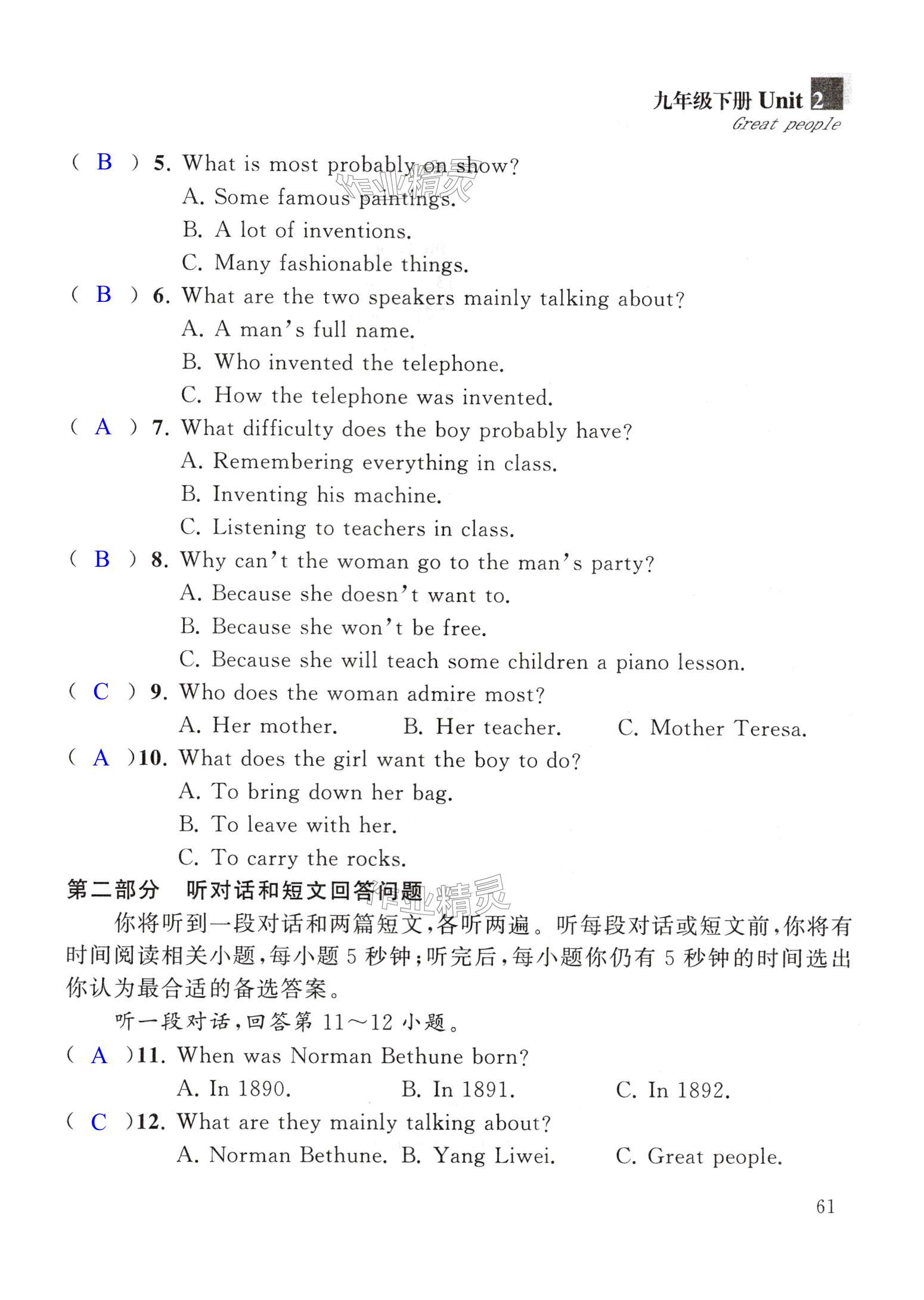 注:目前有些书本章节名称可能整理的还不是很完善,但都是按照顺序排列的,请同学们按照顺序仔细查找。练习册 2024年初中英语拓展课堂突破九年级全一册译林版 答案主要是用来给同学们做完题方便对答案用的,请勿直接抄袭。