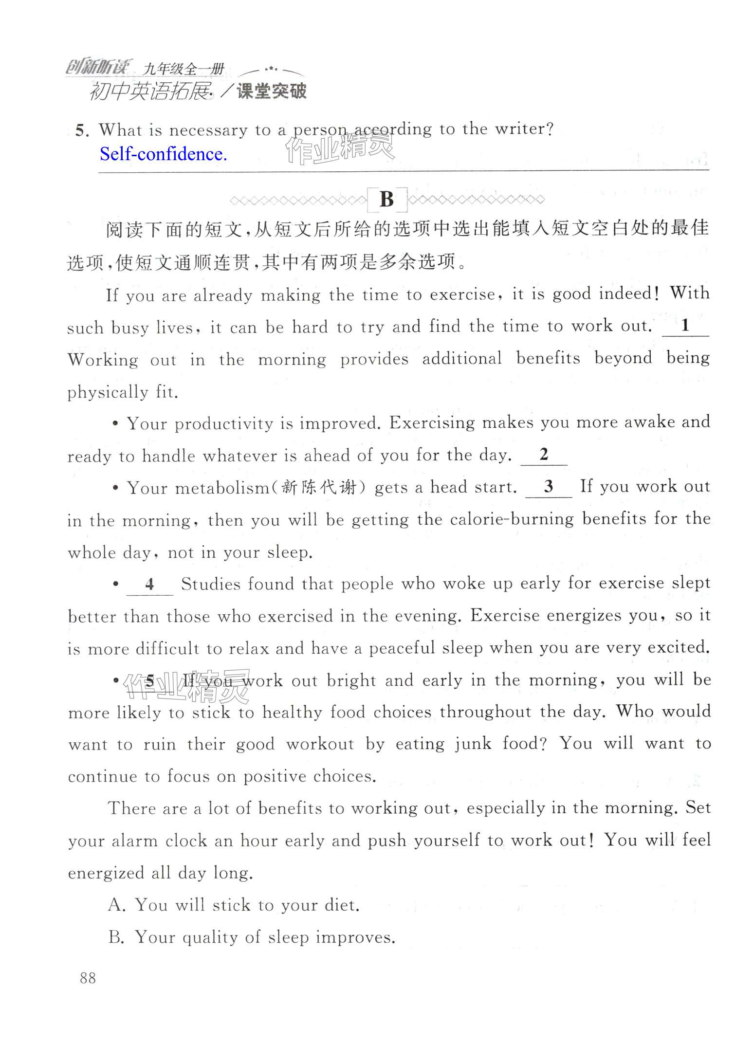 注:目前有些书本章节名称可能整理的还不是很完善,但都是按照顺序排列的,请同学们按照顺序仔细查找。练习册 2024年初中英语拓展课堂突破九年级全一册译林版 答案主要是用来给同学们做完题方便对答案用的,请勿直接抄袭。