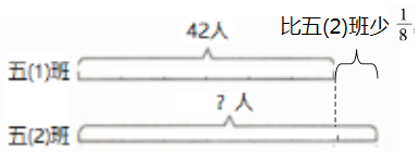 7.五(1)班有学生42人,比五(2)班的人数少$\frac{1}{8}$。五(2)班有学生多少人?(先画出线段图再解答。)