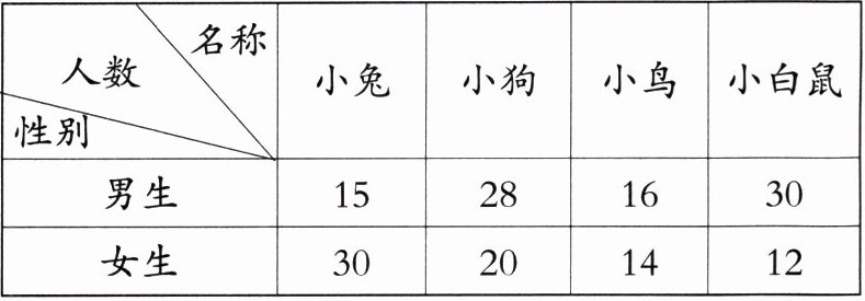 答:男生更喜欢小白鼠,女生更喜欢小兔