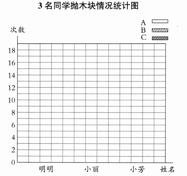 (1)请你根据统计表中每人抛得的A、B、C朝上的次数,完成下面的统计图。