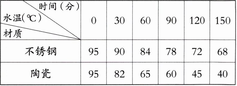4. 下表是不锈钢保温杯和陶瓷保温杯保温情况统计表。