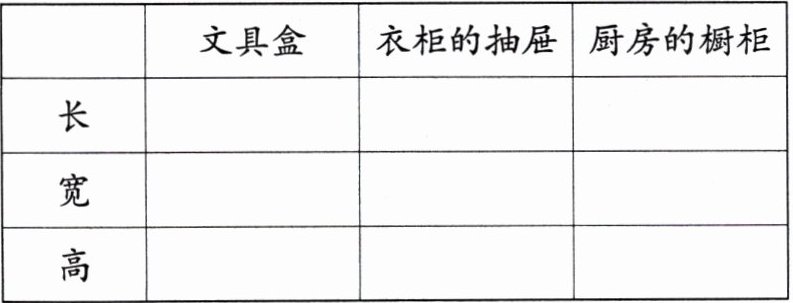 | | 文具盒 | 衣柜的抽屉 | 厨房的橱柜 |
