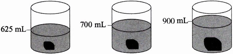 5.下列每个玻璃杯中原有水500mL,现往每个玻璃杯中分别放入了一个石块。每一个石块的体积是多少立方厘米?合多少立方分米?