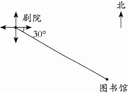 (2)如下图,以剧院为观测点,图书馆在剧院的( )方向上。