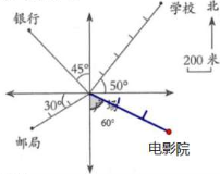 (4)电影院在广场的南偏东$60^\circ$方向上,距离广场600米处。请标出电影院的位置。