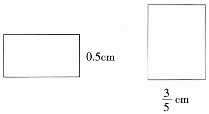 2.下面长方形的面积都是1平方厘米,求相邻边的长度。