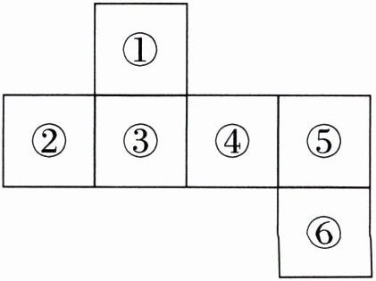 (1)一个正方体展开如下图所示,与②相对的面是( )。