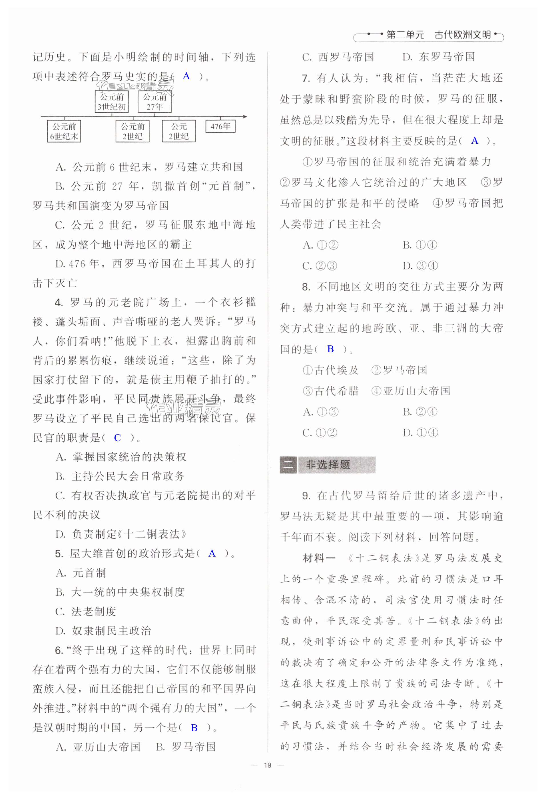 注:目前有些书本章节名称可能整理的还不是很完善,但都是按照顺序排列的,请同学们按照顺序仔细查找。练习册 2024年初中同步练习册九年级世界历史上册人教版北京师范大学出版社 答案主要是用来给同学们做完题方便对答案用的,请勿直接抄袭。