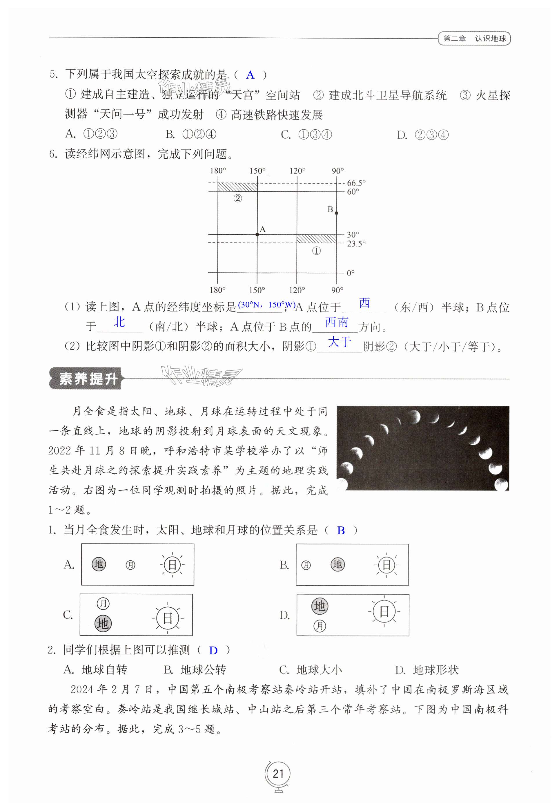 注:目前有些书本章节名称可能整理的还不是很完善,但都是按照顺序排列的,请同学们按照顺序仔细查找。练习册 2024年同步练习册山东教育出版社七年级地理上册湘教版 答案主要是用来给同学们做完题方便对答案用的,请勿直接抄袭。
