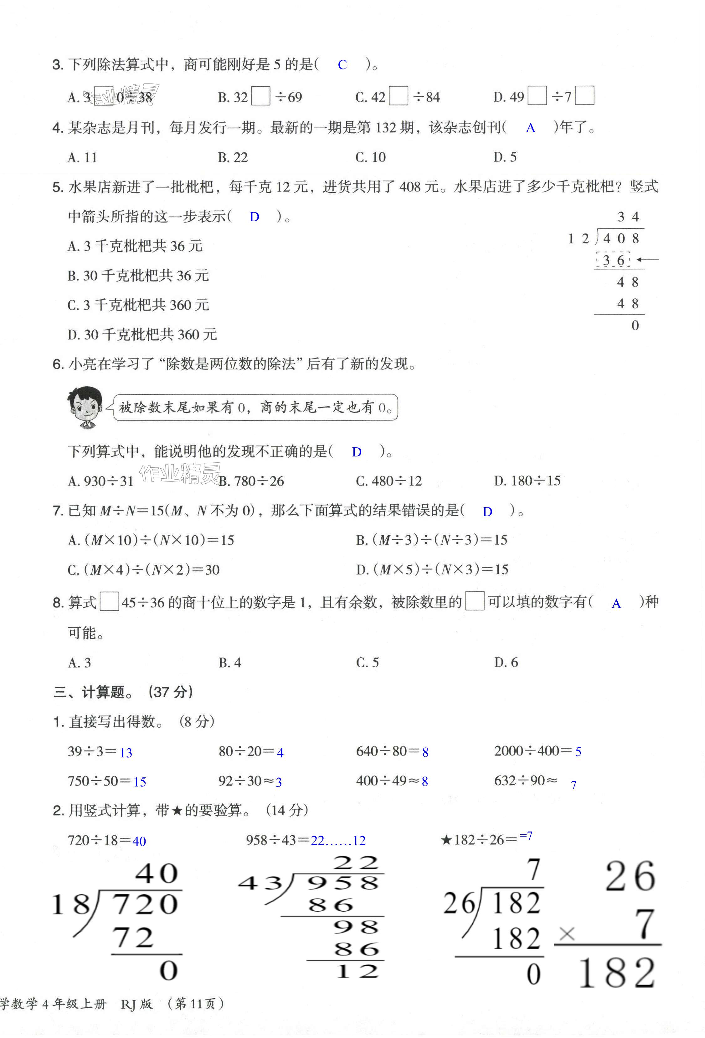 注:目前有些书本章节名称可能整理的还不是很完善,但都是按照顺序排列的,请同学们按照顺序仔细查找。练习册 2024年木头马分层课课练小学数学四年级上册人教版浙江专版 答案主要是用来给同学们做完题方便对答案用的,请勿直接抄袭。