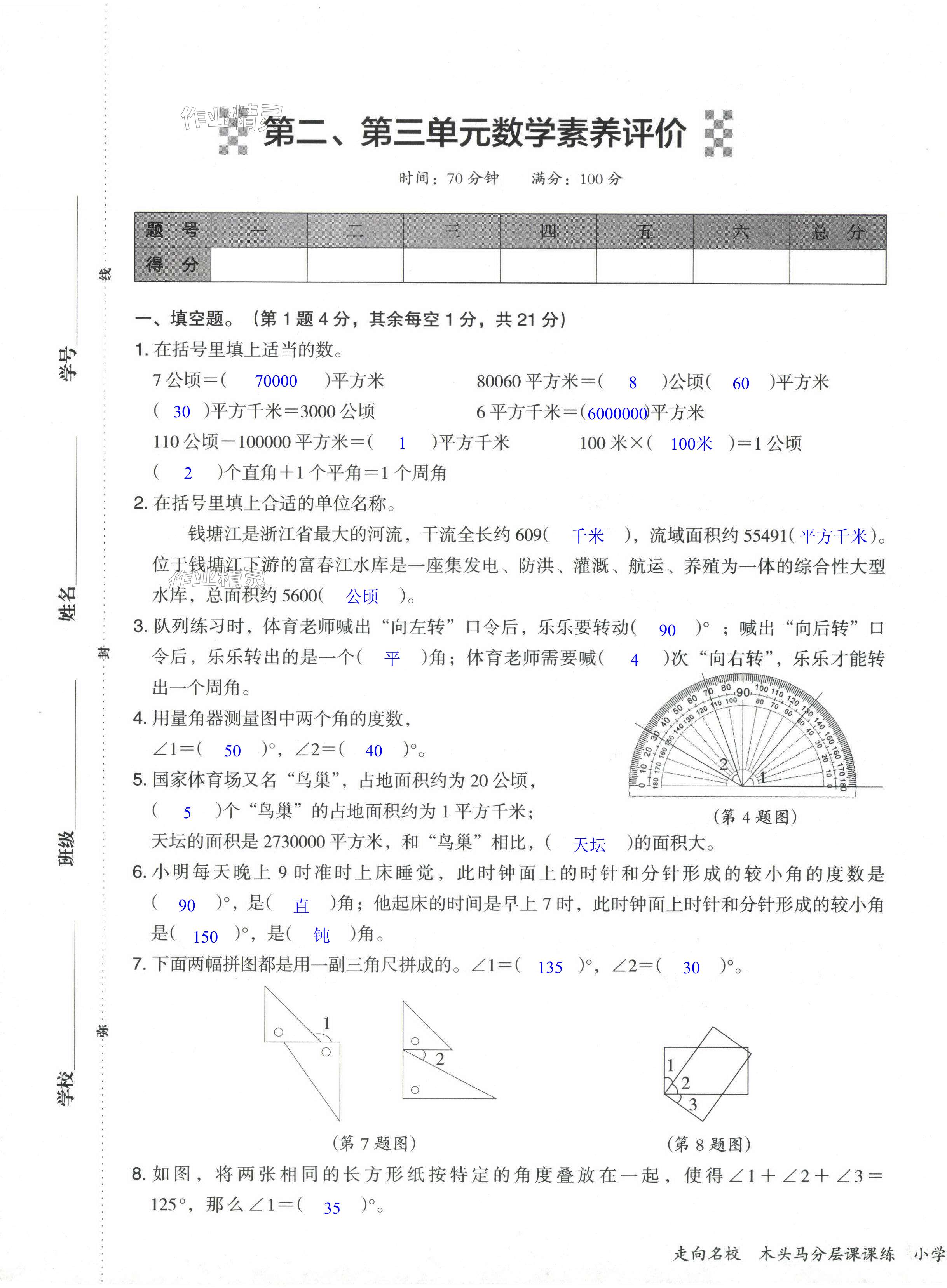 注:目前有些书本章节名称可能整理的还不是很完善,但都是按照顺序排列的,请同学们按照顺序仔细查找。练习册 2024年木头马分层课课练小学数学四年级上册人教版浙江专版 答案主要是用来给同学们做完题方便对答案用的,请勿直接抄袭。