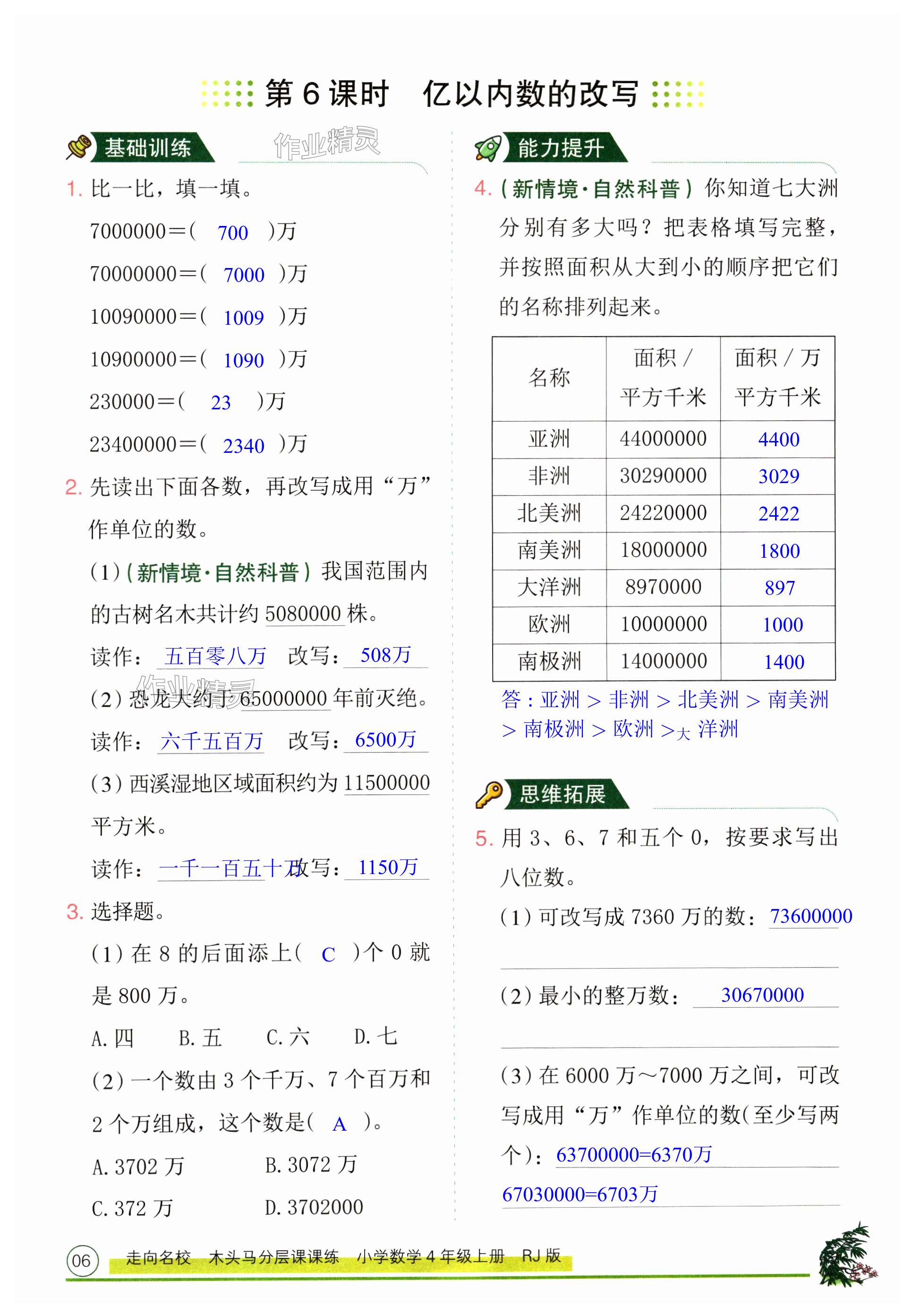 注:目前有些书本章节名称可能整理的还不是很完善,但都是按照顺序排列的,请同学们按照顺序仔细查找。练习册 2024年木头马分层课课练小学数学四年级上册人教版浙江专版 答案主要是用来给同学们做完题方便对答案用的,请勿直接抄袭。