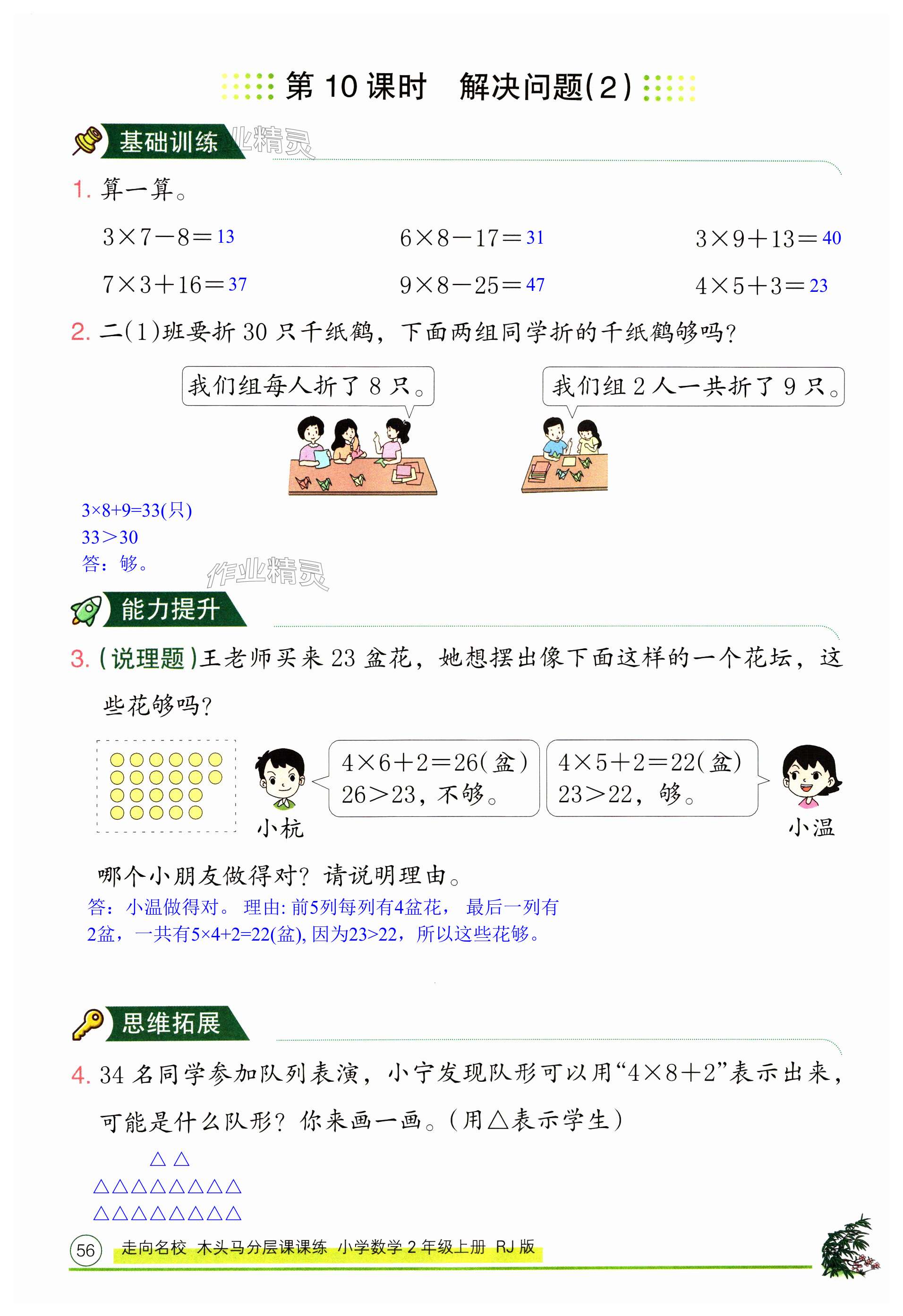 注:目前有些书本章节名称可能整理的还不是很完善,但都是按照顺序排列的,请同学们按照顺序仔细查找。练习册 2024年木头马分层课课练小学数学二年级上册人教版浙江专版 答案主要是用来给同学们做完题方便对答案用的,请勿直接抄袭。