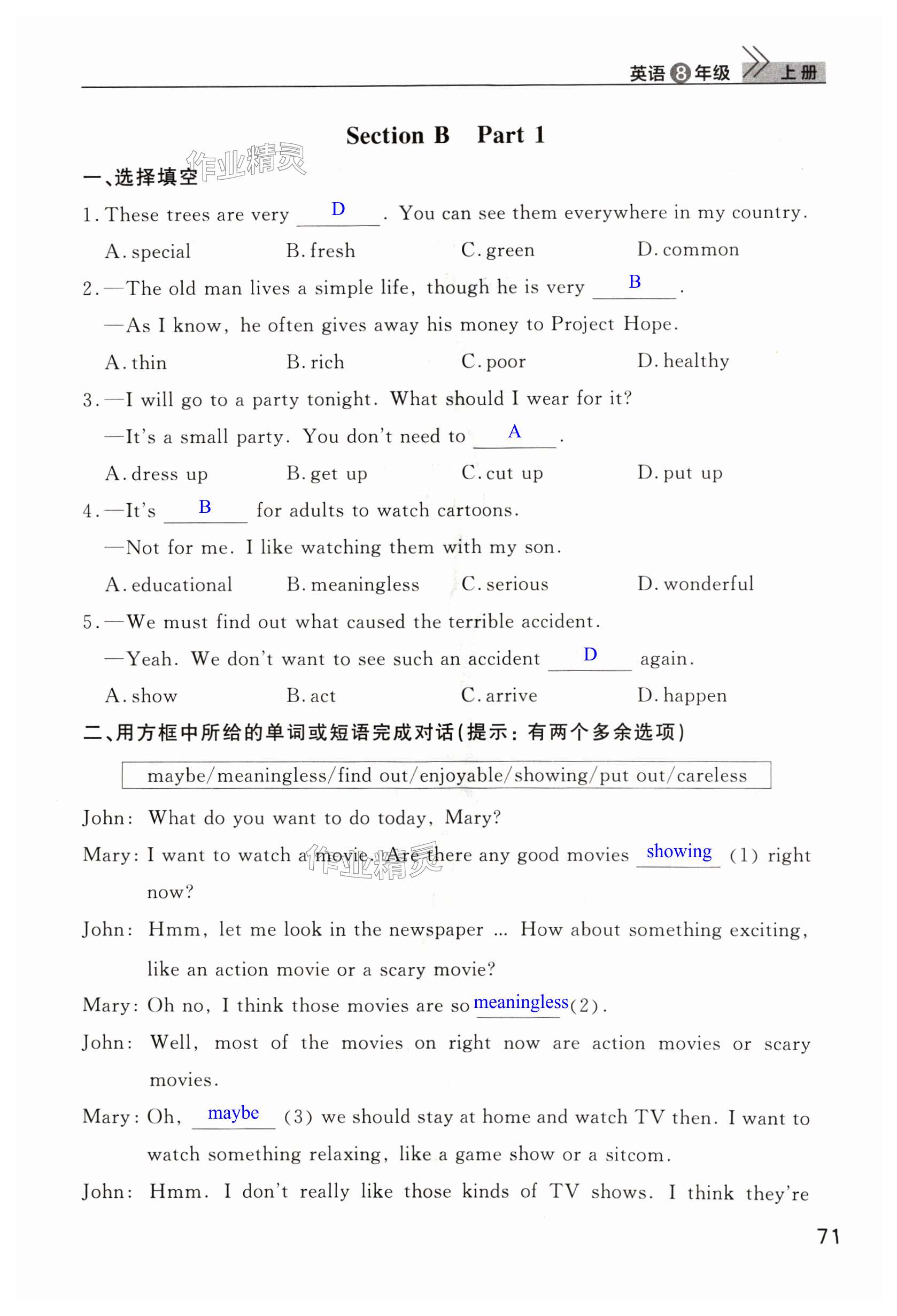 注:目前有些书本章节名称可能整理的还不是很完善,但都是按照顺序排列的,请同学们按照顺序仔细查找。练习册 2024年课堂作业武汉出版社八年级英语上册人教版 答案主要是用来给同学们做完题方便对答案用的,请勿直接抄袭。