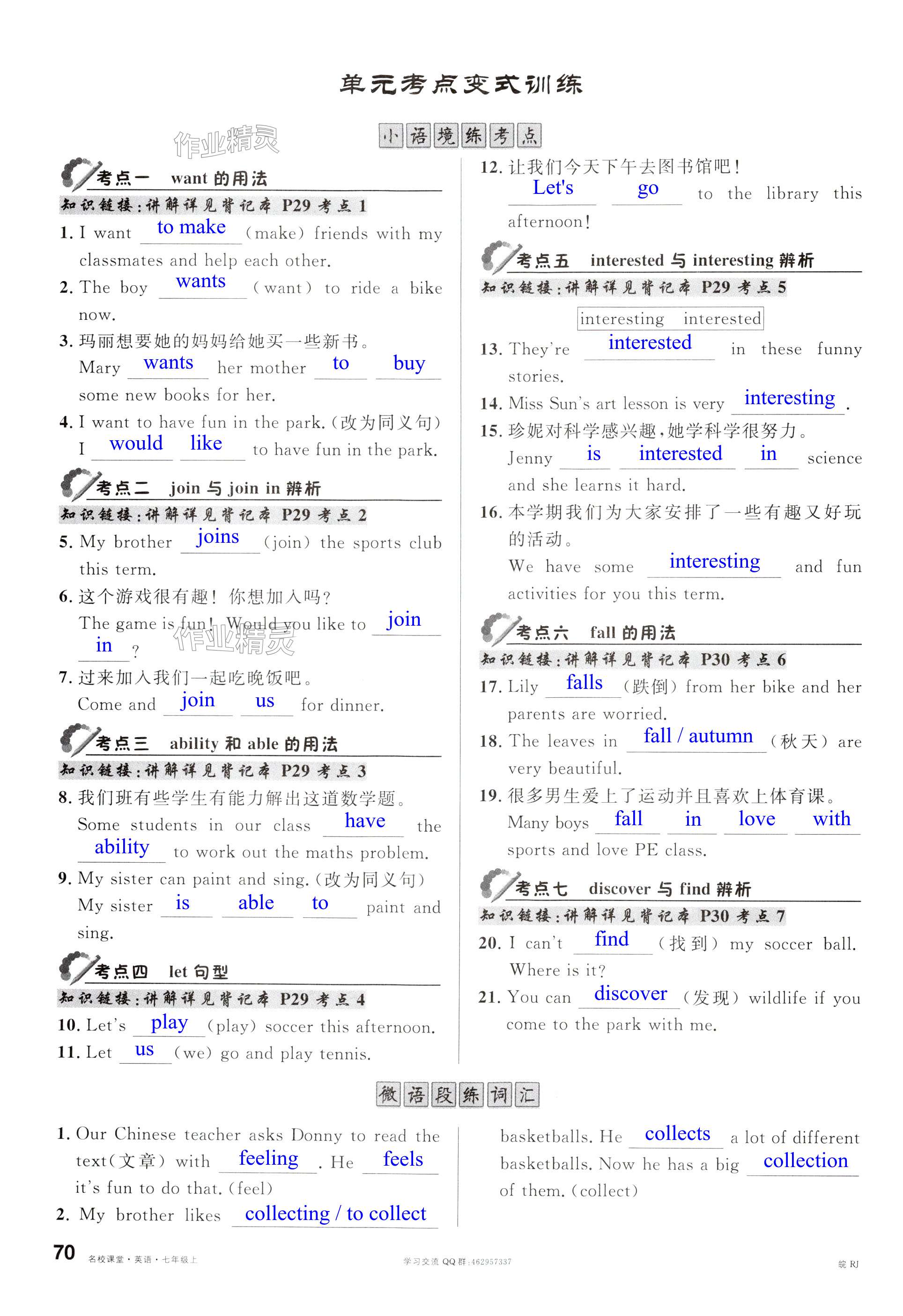 注:目前有些书本章节名称可能整理的还不是很完善,但都是按照顺序排列的,请同学们按照顺序仔细查找。练习册 2024年名校课堂七年级英语上册人教版安徽专版 答案主要是用来给同学们做完题方便对答案用的,请勿直接抄袭。