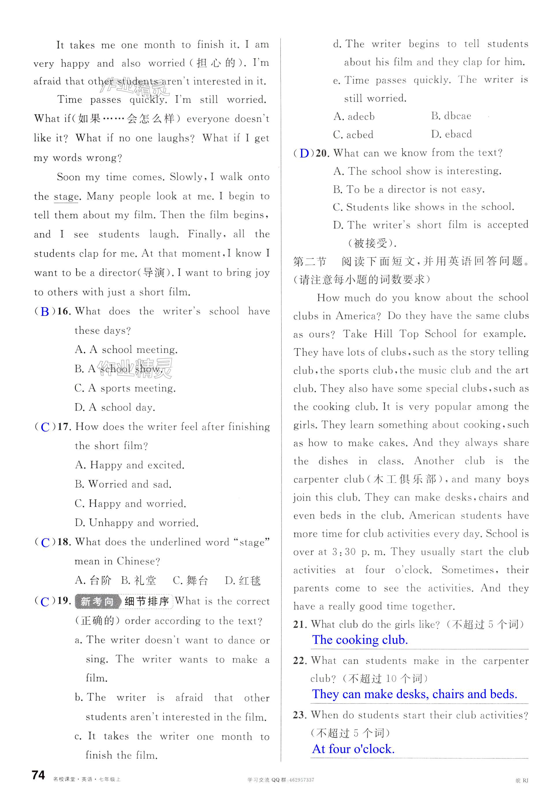 注:目前有些书本章节名称可能整理的还不是很完善,但都是按照顺序排列的,请同学们按照顺序仔细查找。练习册 2024年名校课堂七年级英语上册人教版安徽专版 答案主要是用来给同学们做完题方便对答案用的,请勿直接抄袭。