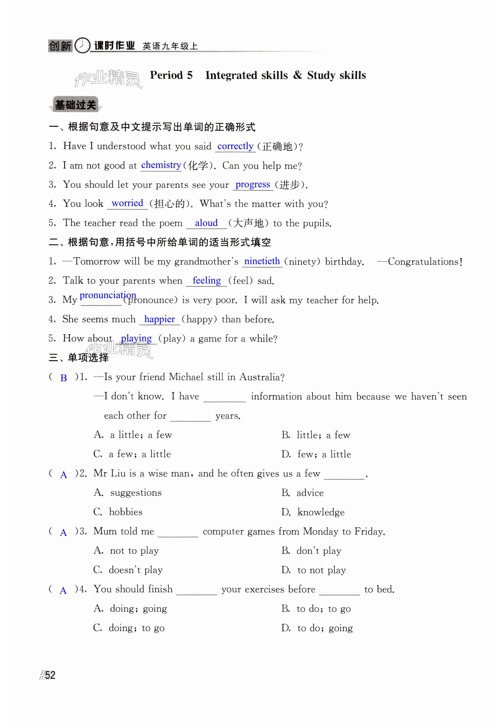 注:目前有些书本章节名称可能整理的还不是很完善,但都是按照顺序排列的,请同学们按照顺序仔细查找。练习册 2024年创新课时作业九年级英语上册译林版 答案主要是用来给同学们做完题方便对答案用的,请勿直接抄袭。