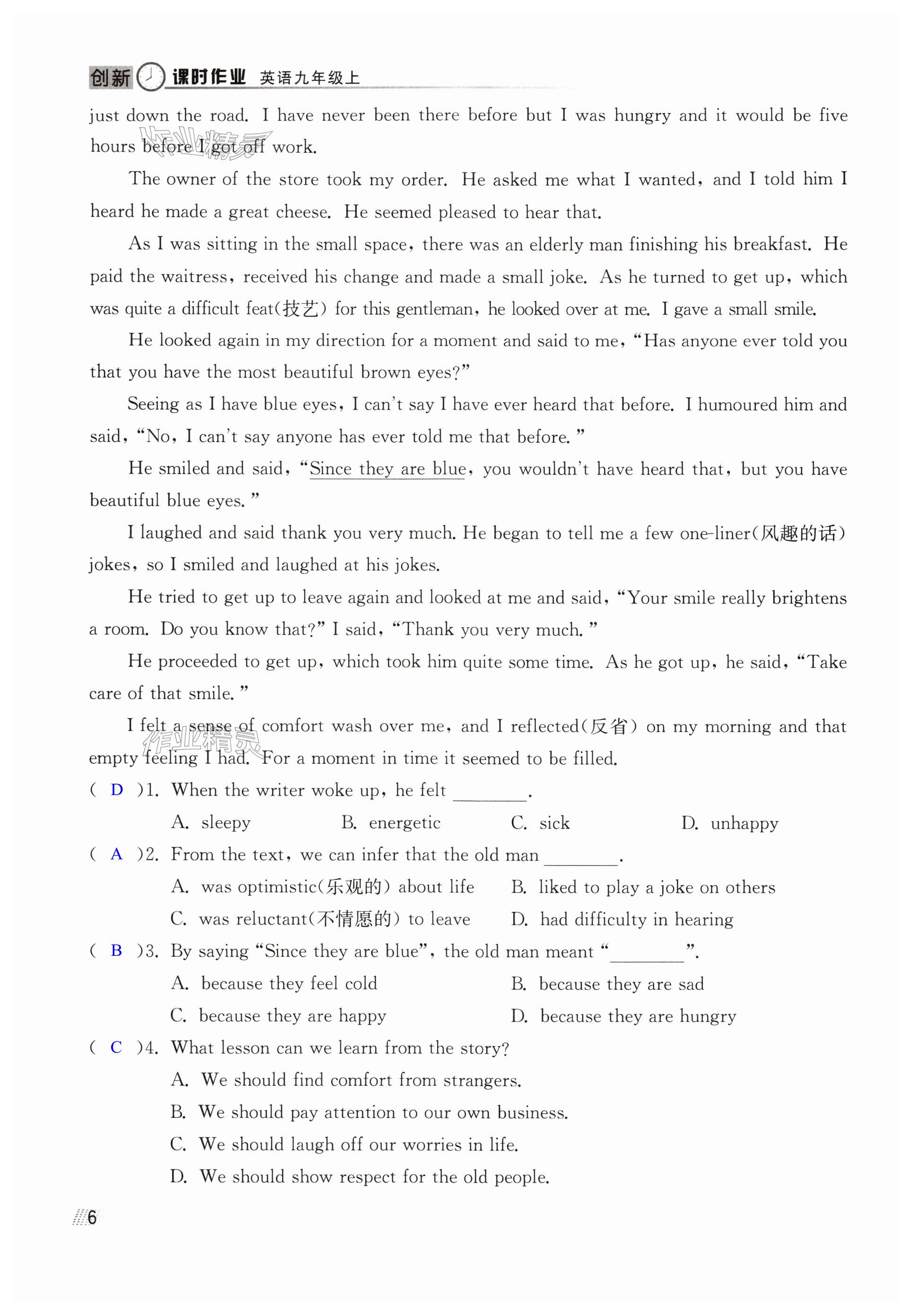 注:目前有些书本章节名称可能整理的还不是很完善,但都是按照顺序排列的,请同学们按照顺序仔细查找。练习册 2024年创新课时作业九年级英语上册译林版 答案主要是用来给同学们做完题方便对答案用的,请勿直接抄袭。