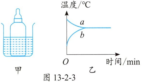 6. 把凉牛奶放在热水中加热(图13-2-3甲),经过一段较长的时间,它们的温度随时间变化的图像如图13-2-3乙所示。下列说法中错误的是( )。