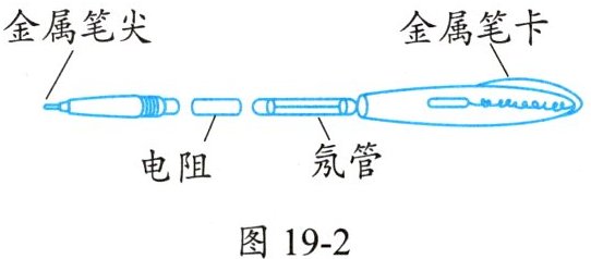 2. 试电笔的构造如图19-2所示,下列关于它的描述正确的是( )。
