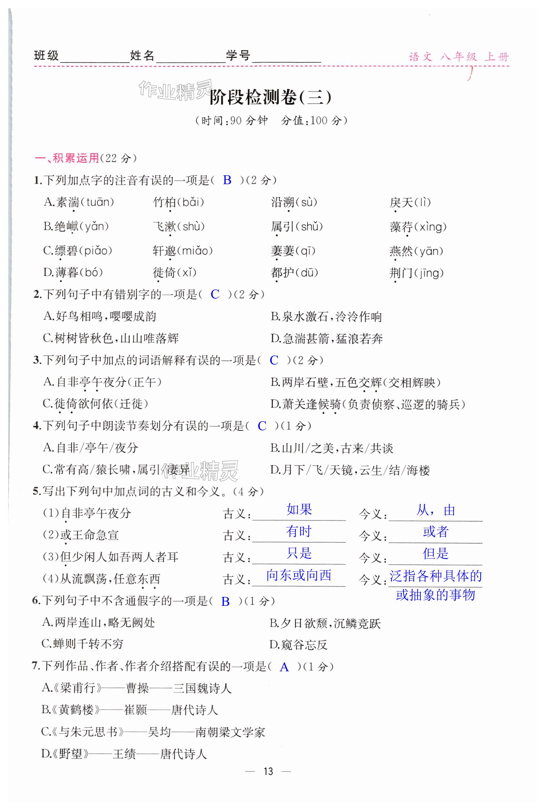 注:目前有些书本章节名称可能整理的还不是很完善,但都是按照顺序排列的,请同学们按照顺序仔细查找。练习册 2024年同步导学案课时练八年级语文上册人教版 答案主要是用来给同学们做完题方便对答案用的,请勿直接抄袭。