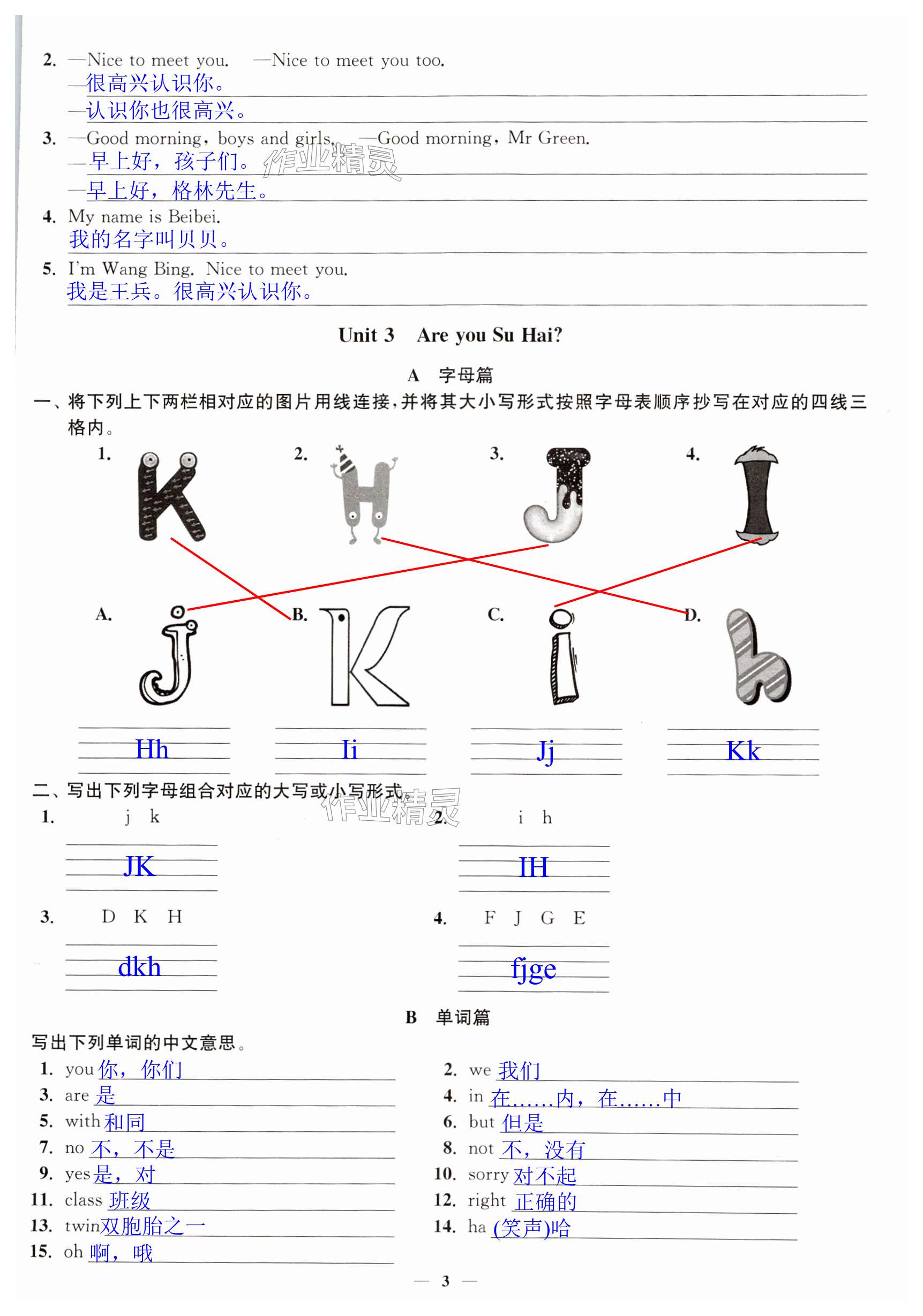 注:目前有些书本章节名称可能整理的还不是很完善,但都是按照顺序排列的,请同学们按照顺序仔细查找。练习册 2024年南通小题课时作业本三年级英语上册译林版 答案主要是用来给同学们做完题方便对答案用的,请勿直接抄袭。