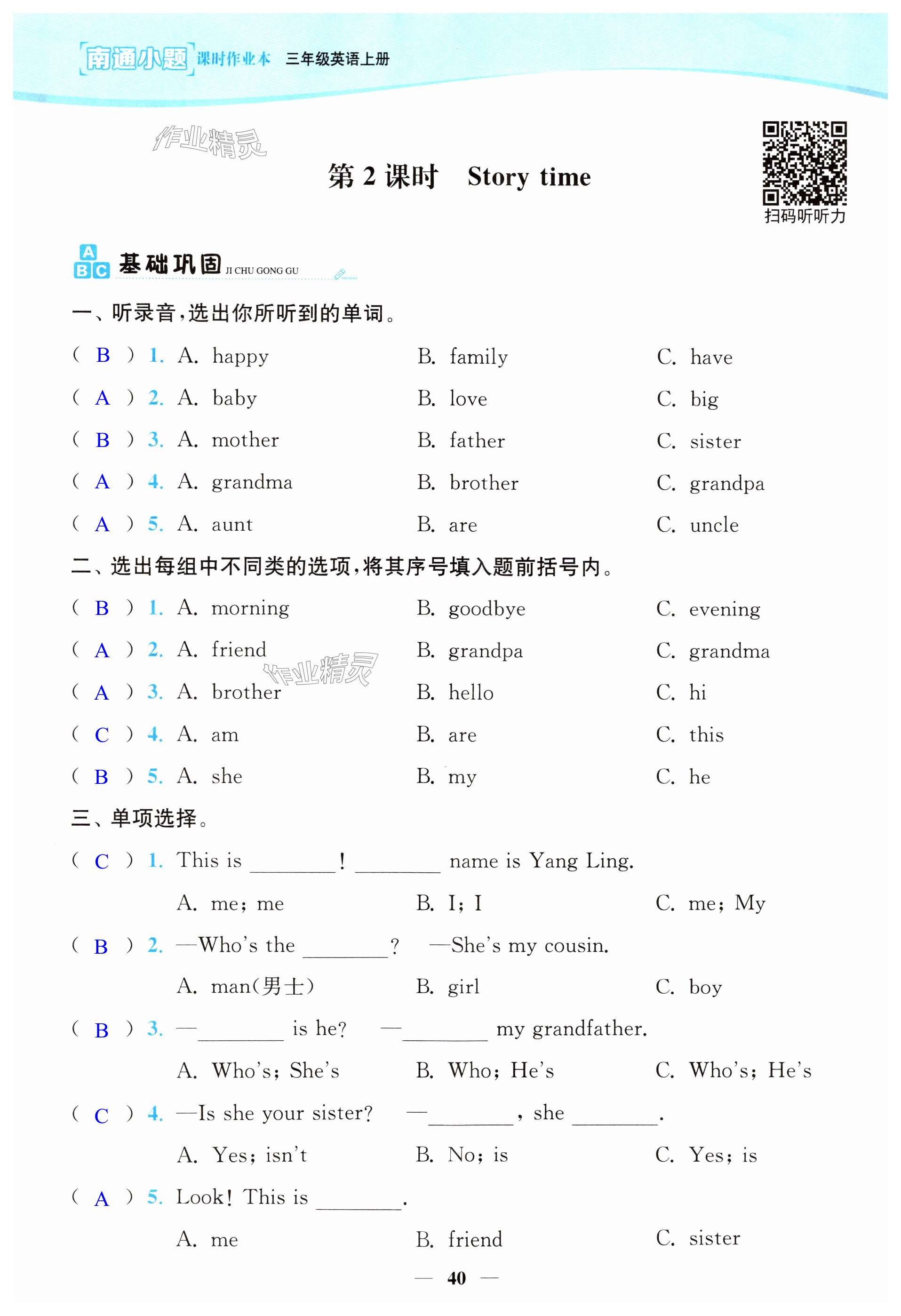 注:目前有些书本章节名称可能整理的还不是很完善,但都是按照顺序排列的,请同学们按照顺序仔细查找。练习册 2024年南通小题课时作业本三年级英语上册译林版 答案主要是用来给同学们做完题方便对答案用的,请勿直接抄袭。