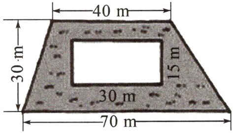 2. 如图,一块梯形地中间有一个长方形游泳池,其余是草地,草地的面积是多少平方米?