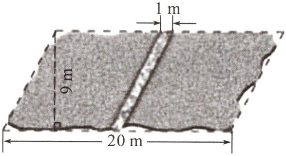 4. 如图,一块近似于平行四边形的草坪中间有一条平行四边形石子路。如果铺1平方米草坪需要18元,那么铺这块草坪约需要多少元?