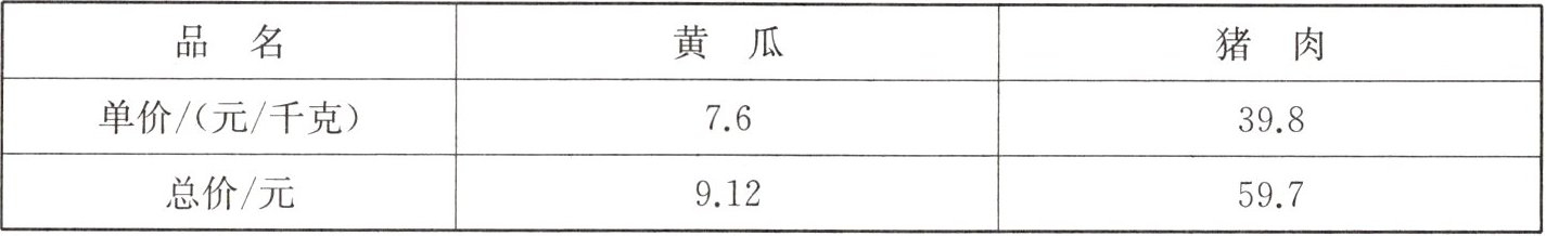 3. 妈妈到菜场买黄瓜和猪肉,有关信息如下表。