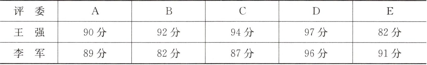 (1) 演讲得分,王强得( )分,李军得( )分。