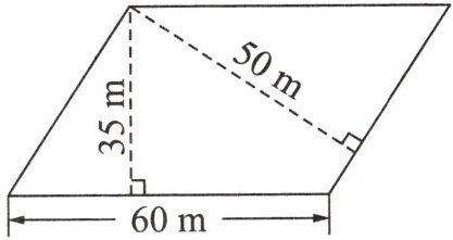4. 铺一块平行四边形草坪(如右图),如果铺1平方米草坪需要20元,那么铺这块草坪需要多少元?