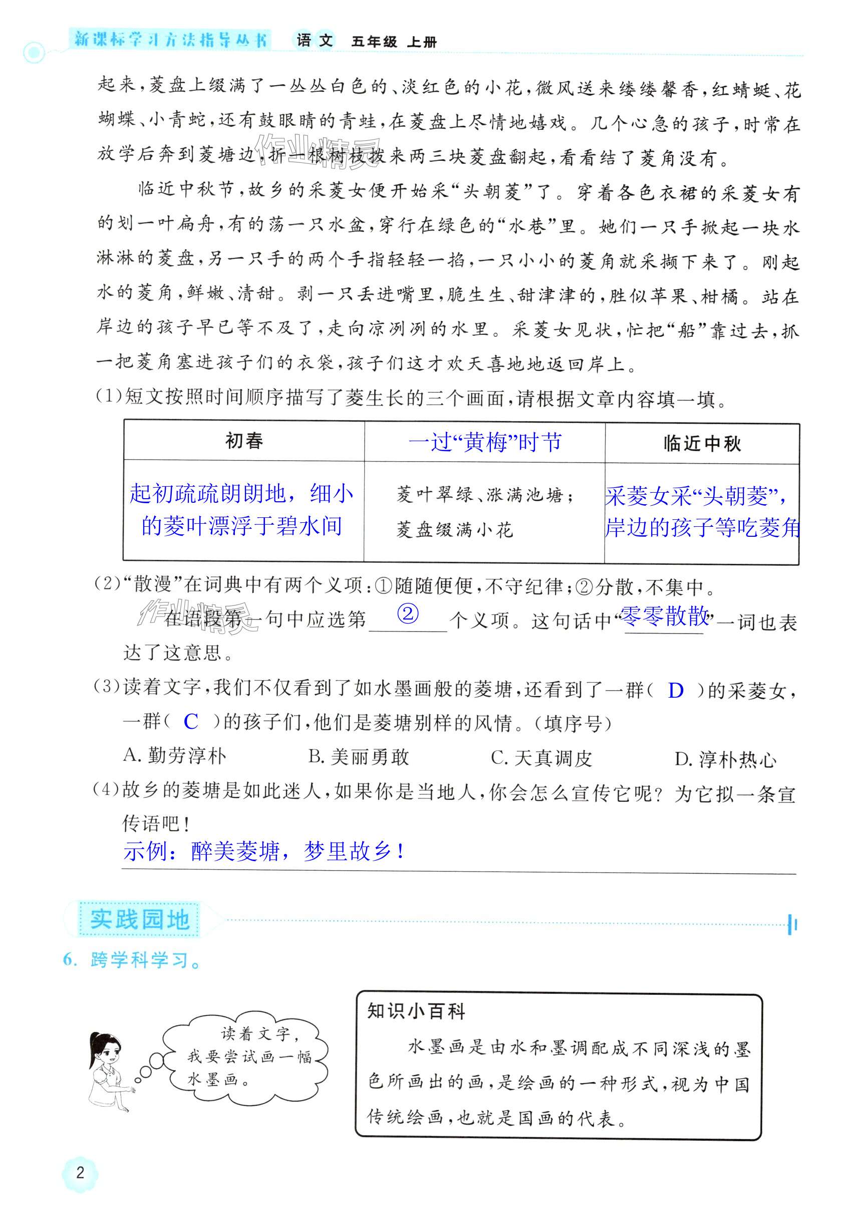 注:目前有些书本章节名称可能整理的还不是很完善,但都是按照顺序排列的,请同学们按照顺序仔细查找。练习册 2024年新课标学习方法指导丛书五年级语文上册人教版 答案主要是用来给同学们做完题方便对答案用的,请勿直接抄袭。