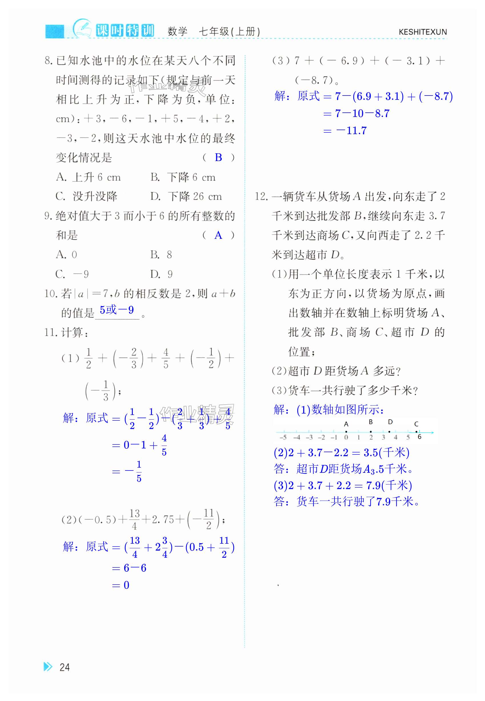 注:目前有些书本章节名称可能整理的还不是很完善,但都是按照顺序排列的,请同学们按照顺序仔细查找。练习册 2024年课时特训七年级数学上册浙教版 答案主要是用来给同学们做完题方便对答案用的,请勿直接抄袭。