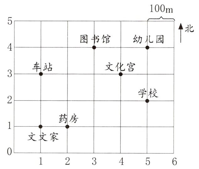 (2)答:文文先去了药房,再去了文化宫,图书馆,接着回家。