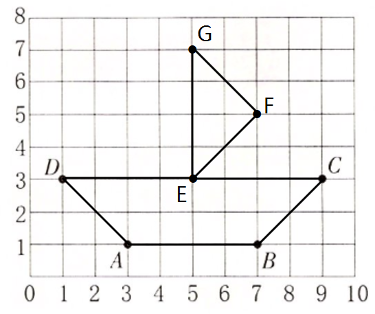 (2)请你在图中标出$E(5,3)$、$F(7,5)$、$G(5,7)$的位置,并将右图中D、A、B、C、E、F、G、E、D依次连起来。它们组成了( )图形。