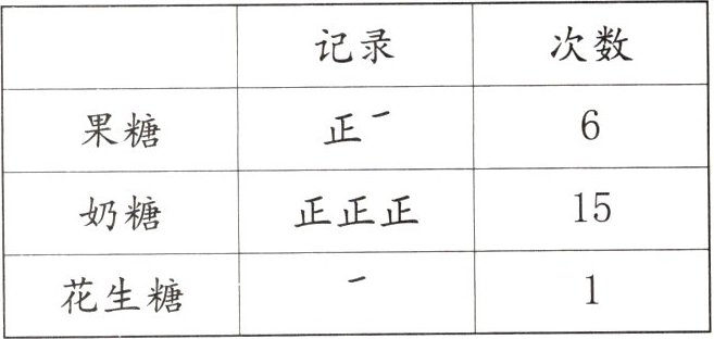 1. 下面是同学们做摸糖游戏的记录表。(每次摸后放回,摇匀再摸。)