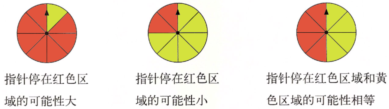 指针停在红色区域的可能性大 指针停在红色区域的可能性小 指针停在红色区域和黄色区域的可能性相等