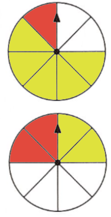 (2)指针停在红色和黄色区域的可能性相等,停在白色区域的可能性最大。