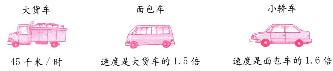 答:面包车的速度是67.5千米/时,小轿车的速度是108千米/时。