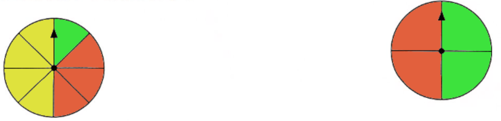 (1)指针可能停在红色、绿色、黄色区域,停在黄色区域的可能性最大,停在绿色区域的可能性最小。