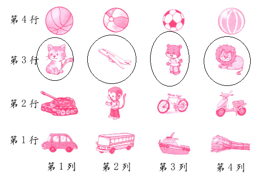 (1)小明套中了放在$(x,3)$位置上的物品,他可能套中了什么?把对应的图圈起来。