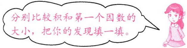 分别比较积和第一个因数的大小,把你的发现填一填。
