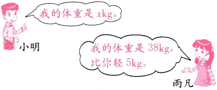 雨凡:我的体重是$38kg$,比你轻$5kg$。
