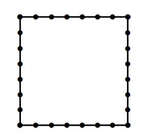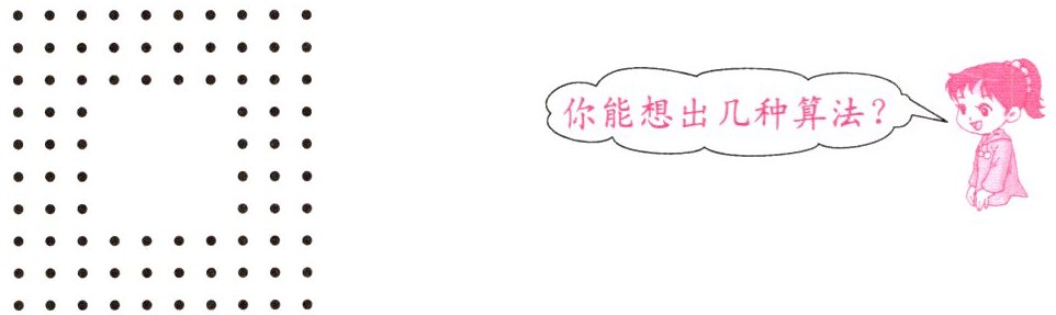 小明在棋盘上用围棋子摆出了一个3层棋子的空心方阵,最外层每边是10颗棋子。如图: