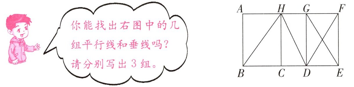 2. 下面的图形中,哪两条边互相平行?哪两条边互相垂直?